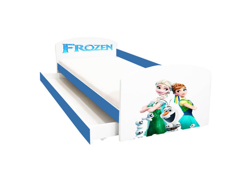 Patului pentru copii cu sertar Frozen i se potriveste saltea 180x80 cm.