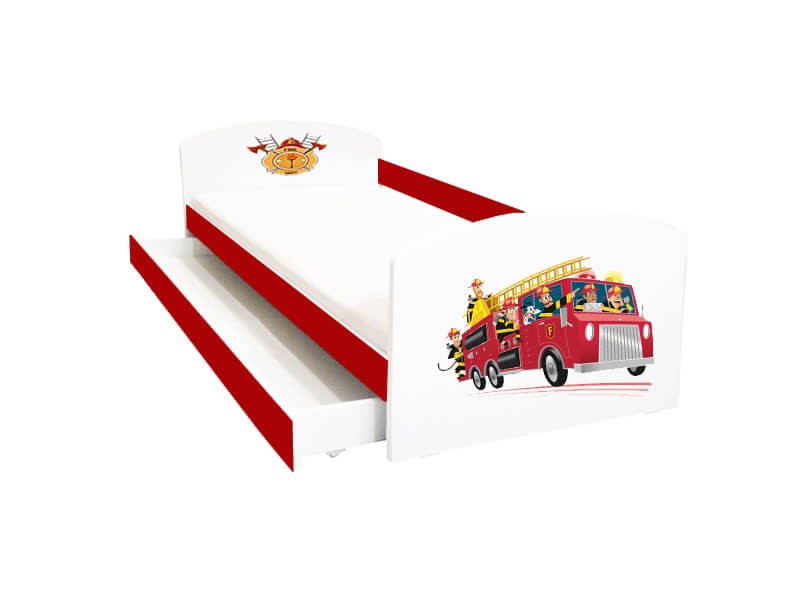 Patului pentru copii cu sertar Pompieri i se potriveste saltea 180x80 cm.