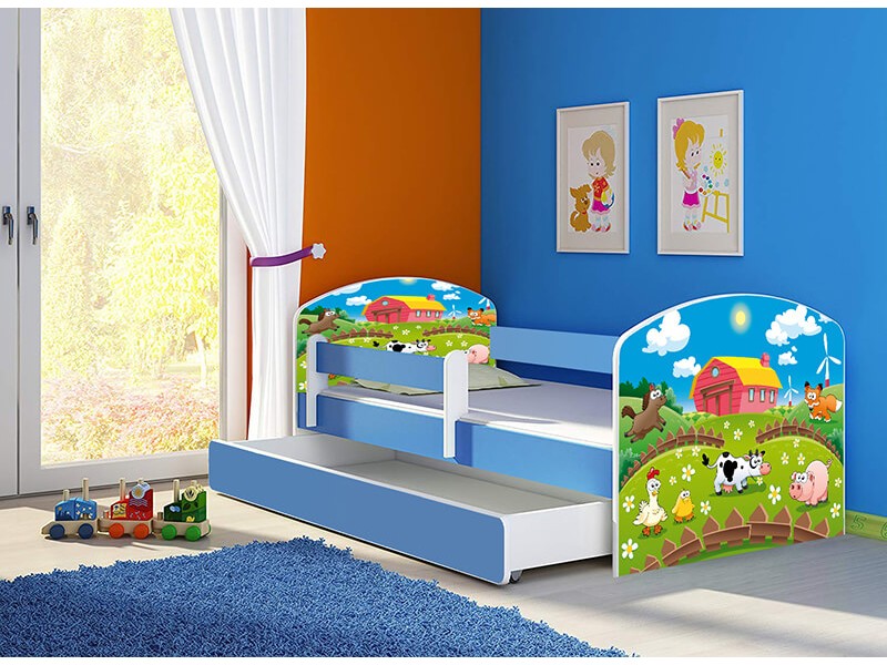 Set Complet - Pat copii cu sertar si saltea Ferma Fericita si protectie anticadere se executa pe comanda in 3-10 zile lucratoare, timpul confectionarii variaza in functie de perioada in care a fost plasata comanda.