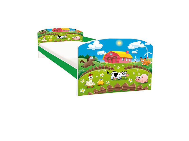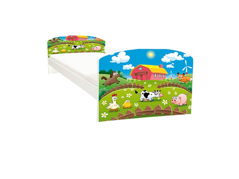 Patului pentru copii Ferma Fericita i se potriveste saltea 180x80 cm.