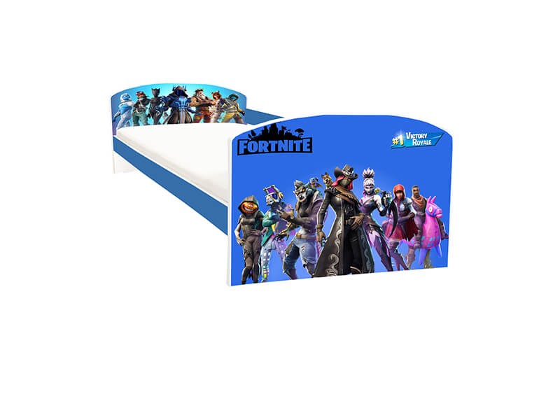 Patului pentru copii Fortnite albastru i se potriveste saltea 140x70 cm.