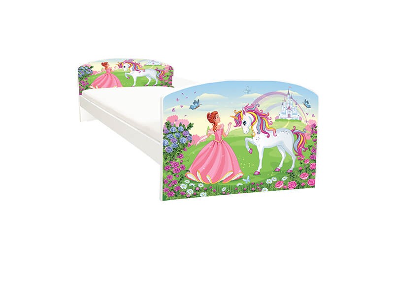 Patului pentru copii Princess Unicorn i se potriveste saltea 160x80 cm.