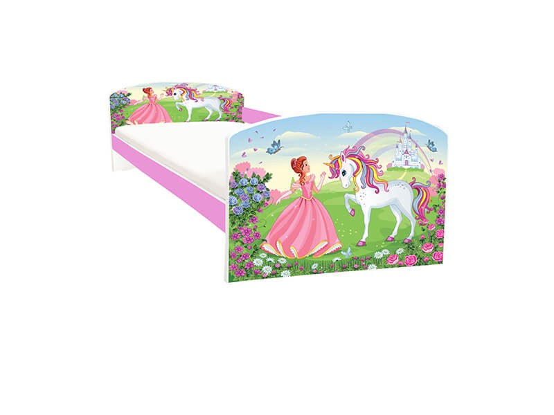Patului pentru copii Princess Unicorn i se potriveste saltea 180x80 cm.