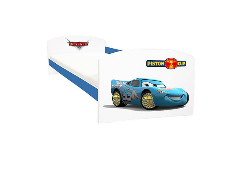 Patului pentru copii Cars Dinoco i se potriveste saltea 180x80 cm.