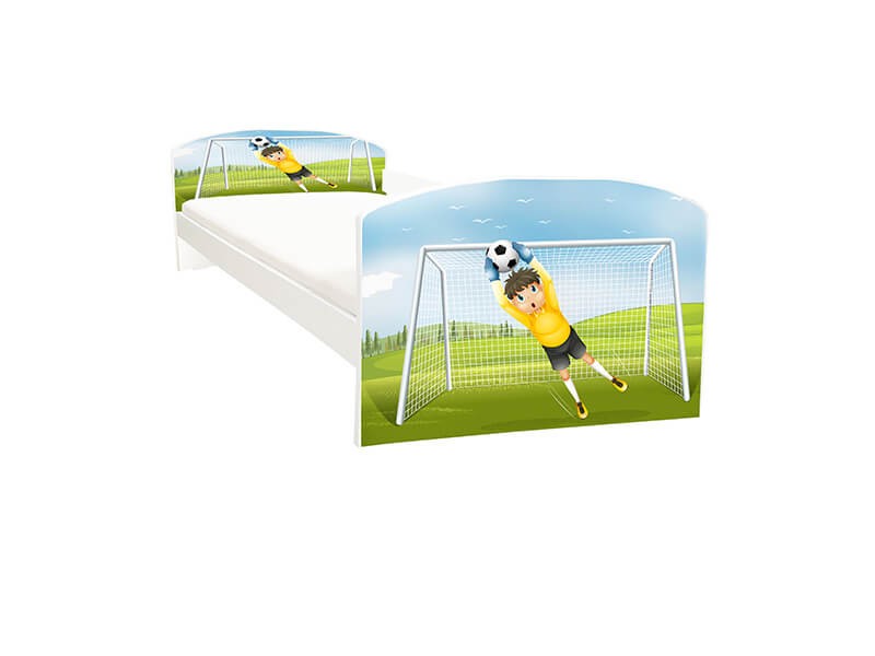 Patului pentru copii Fotbal Portar i se potriveste saltea 180x80 cm.
