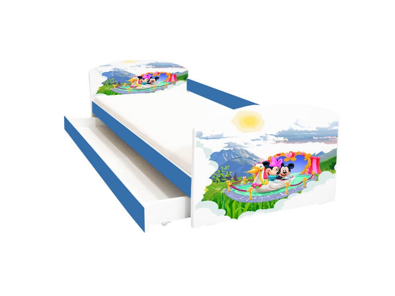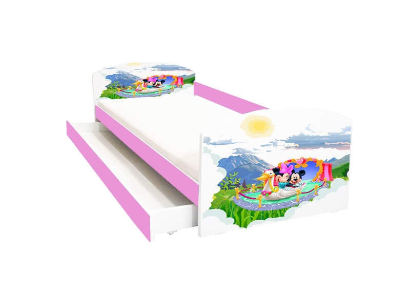 Caracteristici pat copii cu sertar Mickey si Minnie Mouse :